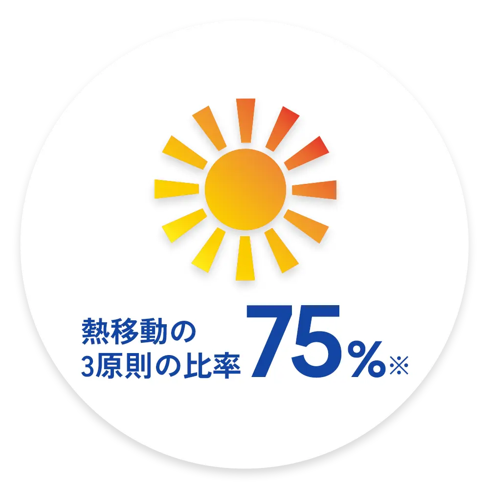 伝導が5%、対流が20%、輻射が75%と一番比率を占めています。※