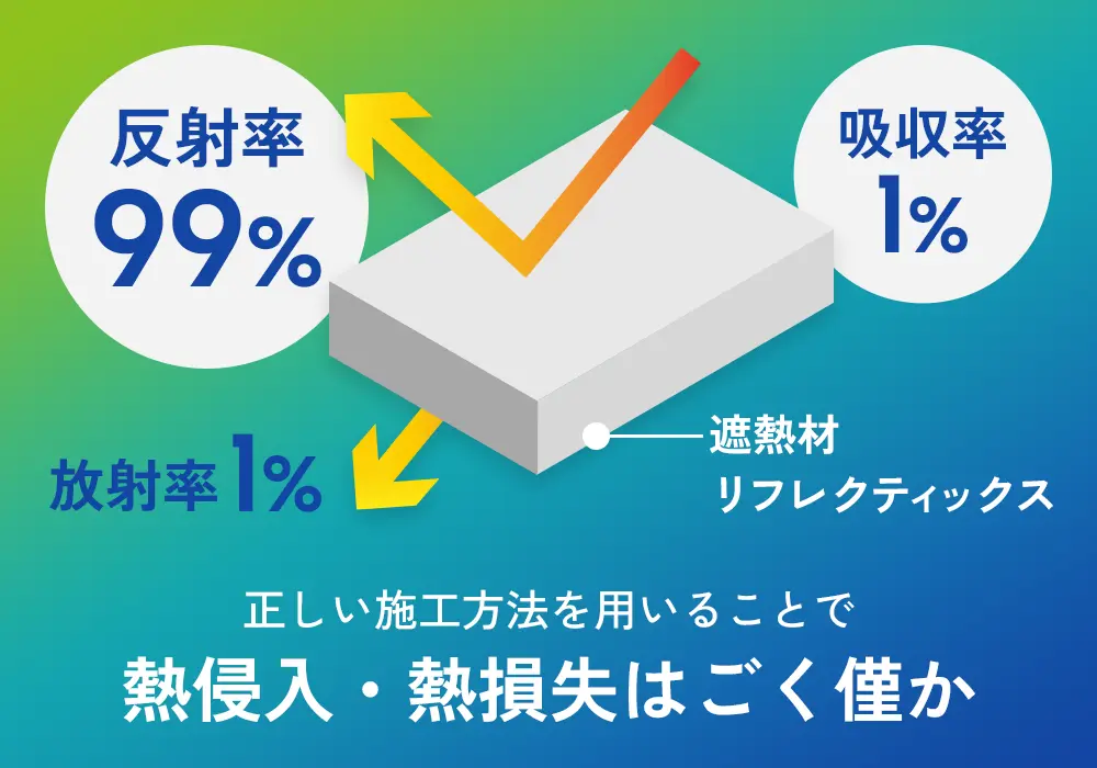 リフレクティックスがこの「輻射熱」を反射することにより、室内の冷気を保ちます。