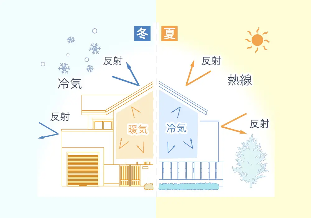 夏は室内への熱の侵入を防ぎ、冬は室内の暖かな空気の流出を防ぐため、